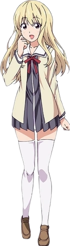 Sayaka is a beautiful pale-skinned young girl with long blonde hair and brown eyes. She has an extremely flat chest, which still looks flat even after she pads it.